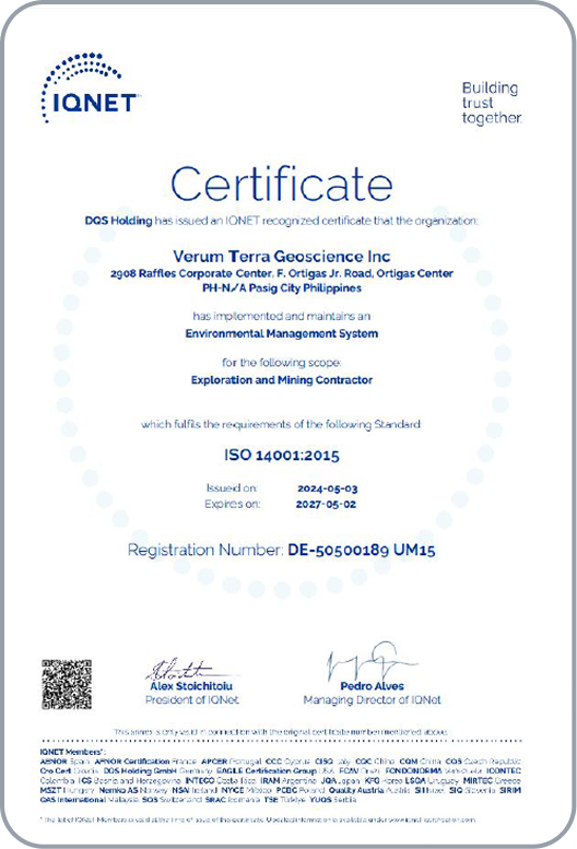 Envisioned to be a leading entity in providing excellent services in the field of mineral exploration and development. To establish it's own mining operations and excellently managing the four major component of the mining industry.